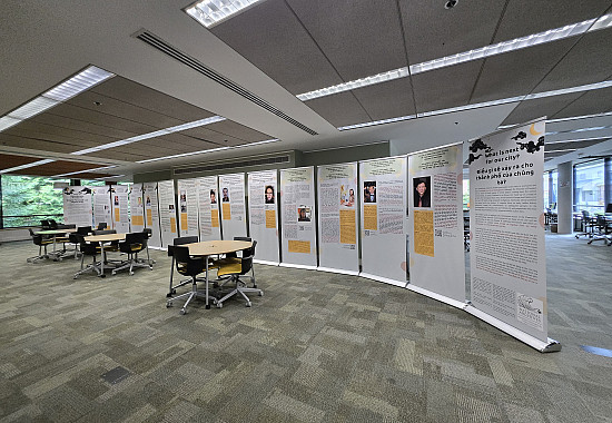 Nhân Hàn BA ’27 and Thoan Nguyễn BA ’27, with project manager Zoë Maughan BA ’19, curated a 15-panel, bilingual traveling exhibit highlighting stories from Vietnamese Portland: Memory, History, Community, an archive documenting experiences of Vietnamese Portlanders.